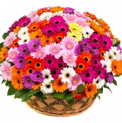 Корзина из 101 разноцветной герберы | Фото и цена в Дубне