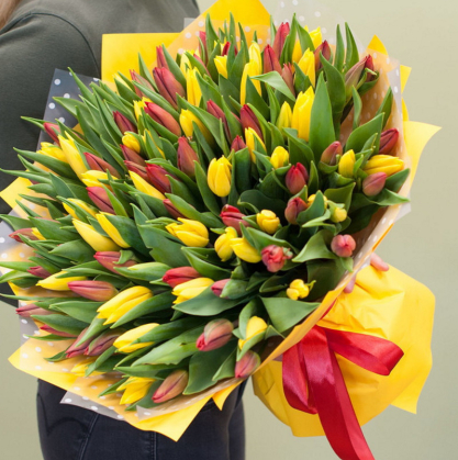 101 красный и желтый тюльпан | Купить букет в Дубне