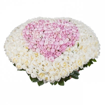 Сколько пионов может поместиться в корзину? 25, 51, 101... Предлагаем на VIP вариант из 501 пиона, выложенного сердцем, в корзине.