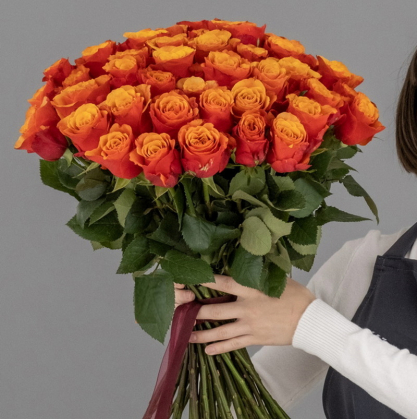 Оранжевые розы сорта Hight Orange. Возможен выбо растовки: 50, 60, 70см.