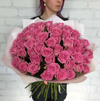 51 розовая роза в упаковке | Купить в Дубне