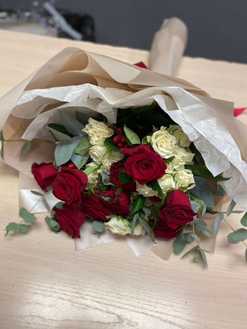 Я покупал букет из красных роз + метрового мишку. Честно говоря, меня мишка сильнее порадовал, поскольку я цветы не очень люблю, но и они были вроде красивые, на мой скверный оценочный взгляд.