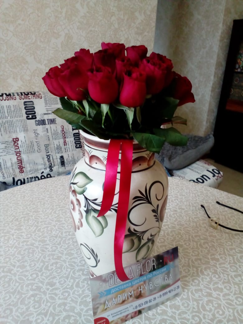 Спасибо большое! Живу заграницей,заказывала букет из 39 красных роз в Хабаровск. Доставили прекрасные, как будто только что срезанные розы! Еще раз СПАСИБО ОГРОМНОЕ!
