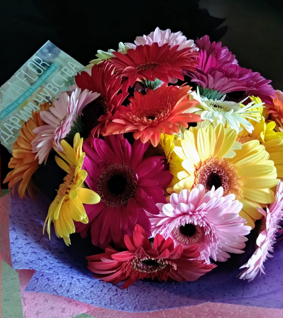 Заказывал букет "Хризантемы и герберы" увеличенный. В итоге букет выглядел даже лучше, чем ожидалось!