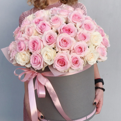 Коробка с розовыми и белыми розами | Купить в Дубне