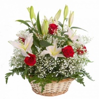 Идеально для корзины на 25 лет подойдут следующие цветы: розовые розы, белые лилии, желтые или розовые орхидеи, нежно лиловые ирисы.