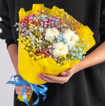 Букет из радужной гипсофилы и хлопка в Дубне