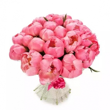 Восхитительный букет коралловых пионов в джут упаковке. Пионы с крупным бутоном и утонченным ароматом.