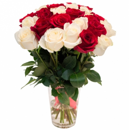 Букет из 25 красных и белых роз