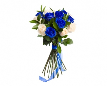 Букет из 15 синих роз с зеленью