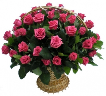 Корзина темно-розовых роз