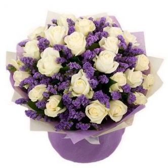 Букет из роз и сиреневой статицы