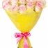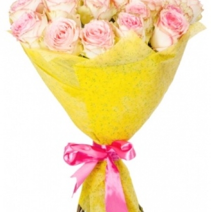 Букет, который приковывает взгляд светящимся розовым верхом и крупным пышным бокаловидным бутоном. Неповторимая форма лепестков. Отличный сорт, способный до двух недель стоять в вазе, сохраняя свежесть. Имеет слабый аромат.