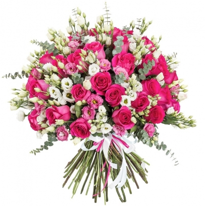 Композиция роз, эустомы, эвкалипта с доставкой в Дубне