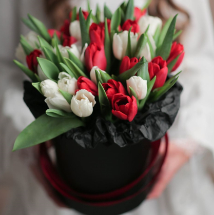 Коробка красных и белых тюльпанов | Купить в Дубне