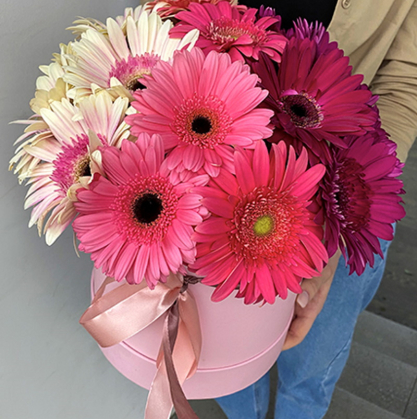 Шляпная коробка с герберами | Купить в Дубне