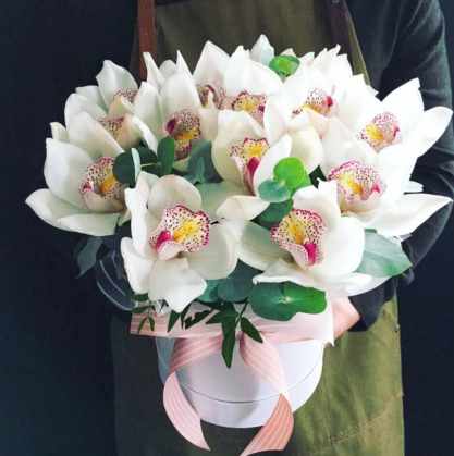 Шляпная коробка с орхидеей - купить с доставкой в Дубне