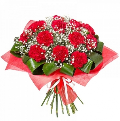 Купить букет из гвоздики, гипсофилы, аспидистры