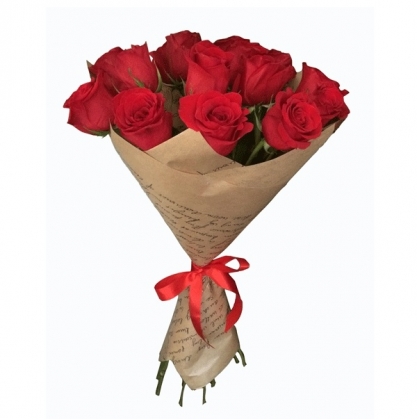 Красные розы в крафт упаковке | Доставка цветов Дубна