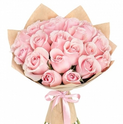 Букет из розовых эквадорских роз в крафт упаковке.