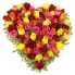 Красочное сердце из разноцветных кенийских роз на оазисе с добавлением зелени
