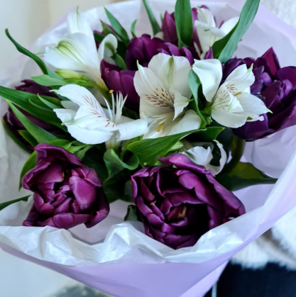 Тюльпаны пионовидные с альстромерией | Купить в Дубне