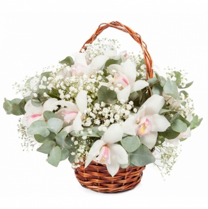 Корзина белых орхидей "Воздушный поцелуй" | Купить в Дубне